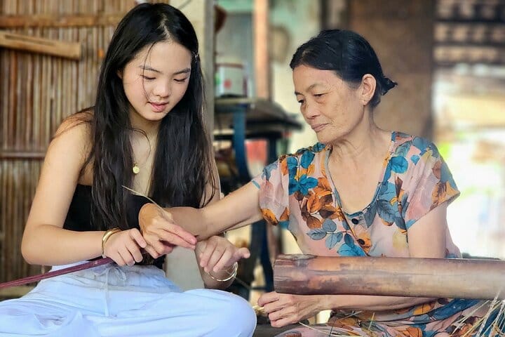 - Visit Tra Nhieu fishing village to weave vibrant straw mats with a local family.